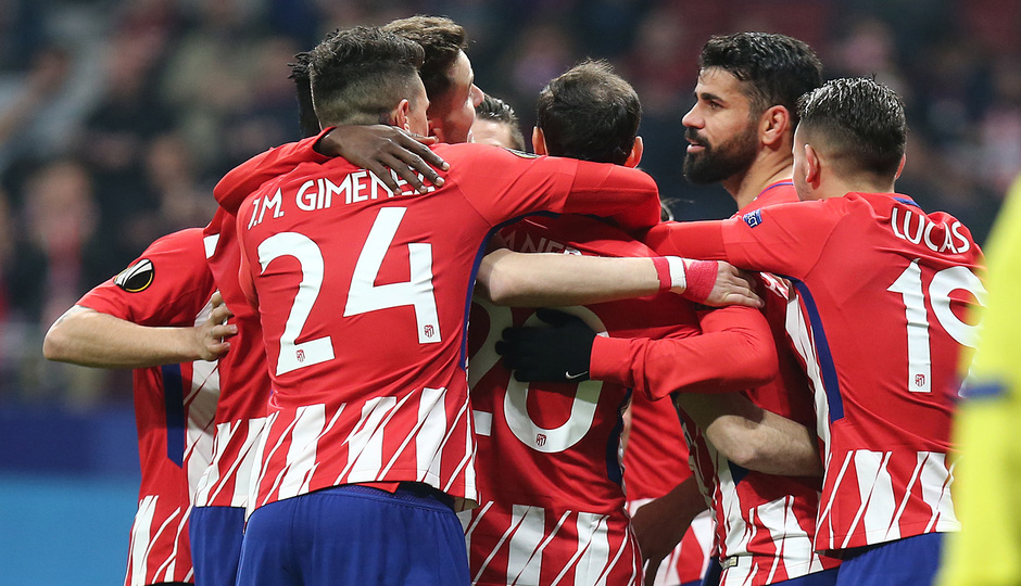 - Los pupilos de Diego Pablo Simeone han ganado los cuatro encuentros disputados hasta la fecha en la presente UEFA Europa League, habiendo apeado al Copenhague en dieciseisavos (1-4 y 1-0) y al Lokomotiv de Moscú en octavos (3-0 y 1-5).